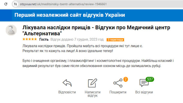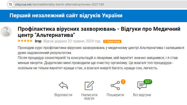 Тут мені нарешті допомгли, бо працювали у комплексі. Лікування із застосуванням озонотерапії, очищувальні процедури і гомеопатія. Я вдячна своєму лікарю. Лікування фарингіту в МЦ «Альтернатива» базується на комплексному підході, який не лише усуває симптоми, а й впливає на першопричину запального процесу.