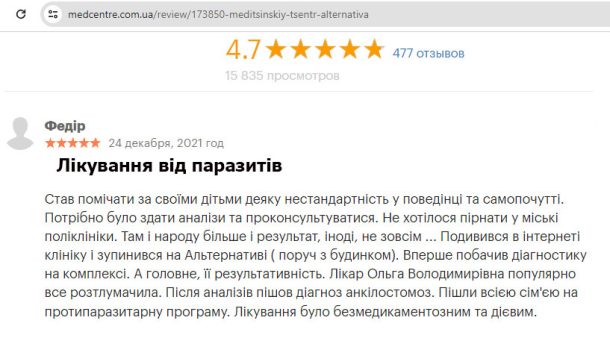 Тільки тут мені допомогли позбутися цієї неприємної хвороби. Я її постійно заліковувала. Зараз уже два роки я про неї не згадую. Відгук вирішила написати, щоб якщо комусь потрібно, то розуміли, що тут її можуть деактивувати. Але хочу одразу звернути увагу, я дотримуюся зараз вже правильного харчування, так як лікар рекомендував. Коли було лікування, то воно не полягало у прибиранні симптомів. Лікували ШКТ, налагодили його роботи, вичистили все сміття і все прийшло в норму. Тому щиро рекомендую Альтернативу!