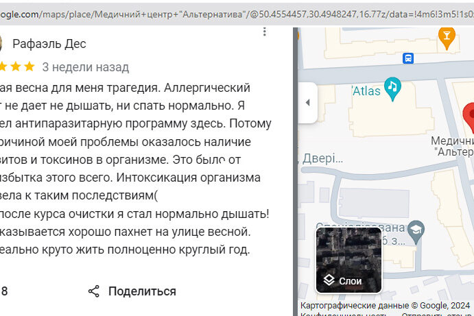 - Програма детоксикації організму (стаціонарна або амбулаторна): Протипаразитарне лікування. Амбулаторна чи стаціонарна програма очищення на 5-10 днів. Очищення організму допомагає вивести токсини та шлаки з організму, відновити обмін речовин, знизити вагу, відновити роботу кишківника, печінки, жовчного міхура, лімфатичної та кровоносної системи;