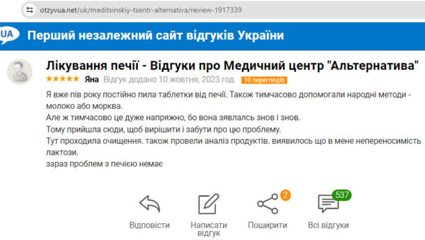 Я уже полгода постоянно пила таблетки от изжоги.Также временно помогали народные методы — молоко или морковь.Но временно это очень напряжно, потому что она появлялась снова и снова.Поэтому пришла сюда, чтобы решить и забыть об этой проблеме.Здесь проходила очищение. Также провели анализ продуктов. Оказалось что у меня непереносимость лактозы.Сейчас проблем с изжогой нет.