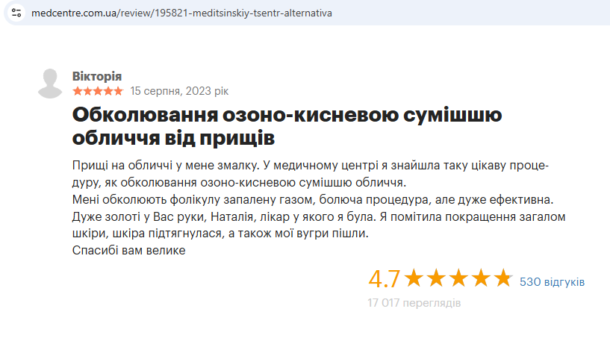 Отзыв: обкалывание прыщей на лице озоно-кислородной смесью