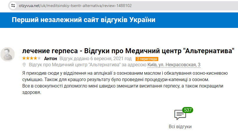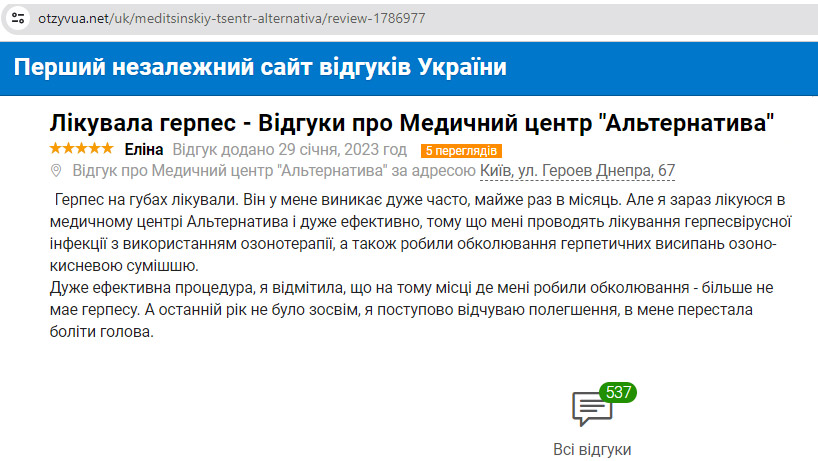 Відгук: герпетичні висипання на руках обколювали озоно-кисневою сумішшю