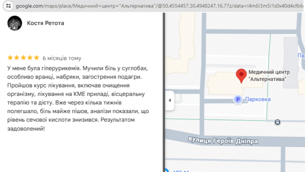 Довгий час я страждав від підвищеного рівня сечової кислоти в крові, що спричиняло болі в суглобах та погіршення самопочуття. Звернувшись сюди, я пройшов комплексну програму очищення організму та відновлення обміну речовин. Фахівці центру розробили для мене індивідуальний план лікування, який включав очищення шлунково-кишкового тракту та корекцію харчування.