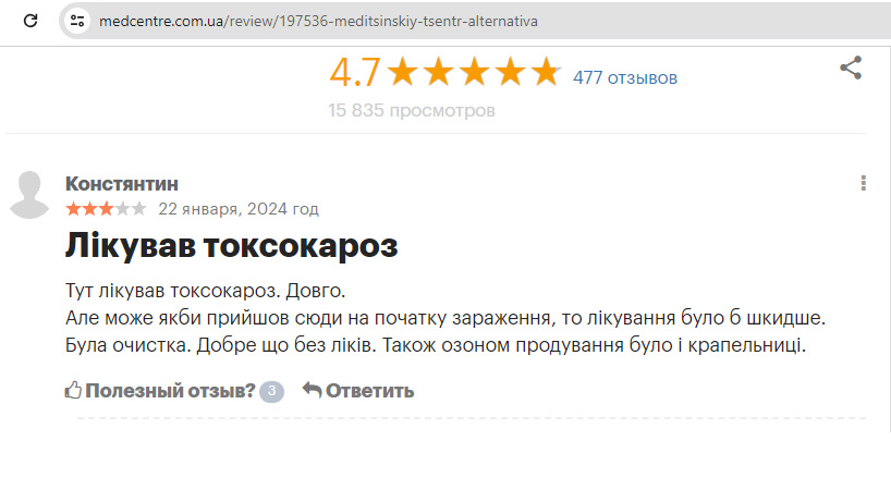 Здесь лечил токсокароз. Долго.