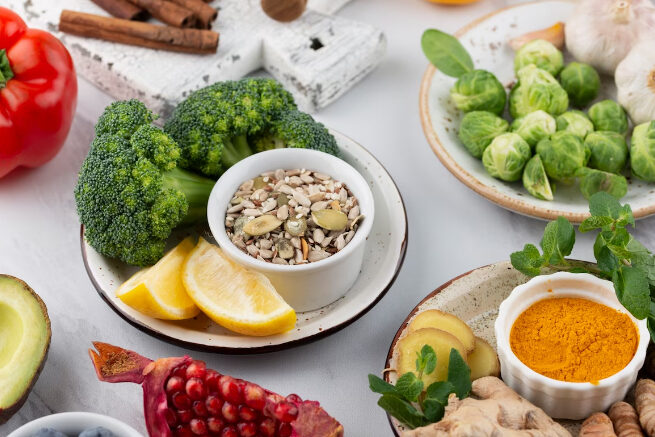- придерживайтесь сбалансированной диеты, богатой фруктами, овощами, цельнозерновыми продуктами и белками низкой жирности.