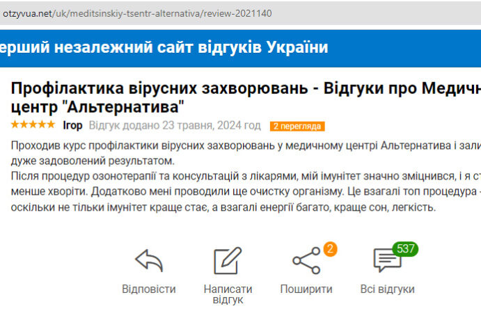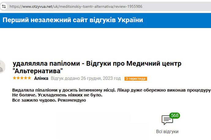 Комплексне лікування генітальної папіломавірусної інфекції у МЦ “Альтернатива”
