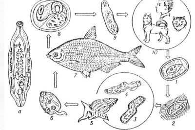 Існує багато різновидів риб, на яких живуть ці паразити. Зазвичай вони затримуються на їх лусці, зябрах і м’язах. Одна з них є гамбузія, яка містить в собі метацеркаріїв. При з’їданні цієї риби личинки паразитів потрапляють у кишківник цільового господаря. Потім, шляхом розмноження, вони впроваджуються між ворсинками слизової оболонки тонкої кишки, досягають статевої зрілості і починають виділяти яйця. Стійкість цих паразитів до життя вбирається у 2 місяці.
