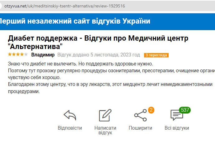 Переваги діагностики та лікування інсулінонезалежного в МЦ «Альтернатива»