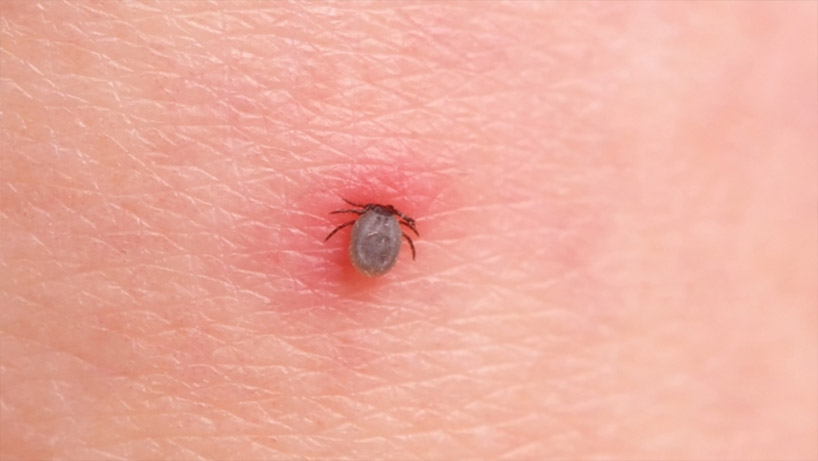 - Окружающий укус эритема (пятно или высыпание вокруг места укуса). Оно обычно распространяется и увеличивается в размерах.