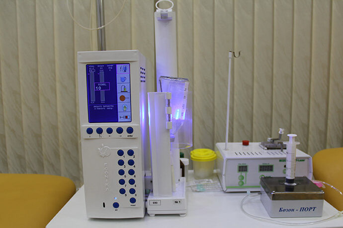 - Внутрішньовенна озонотерапія – введення озонованого фізрозчину, проведення великої аутогемоозонотерапії для знищення бактерій, вірусів та паразитів, насичення тканин киснем та стимуляції регенерації