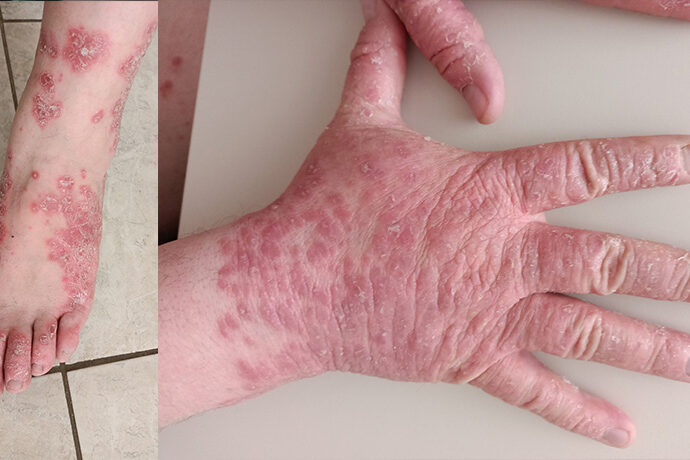 Хворий, 32 роки, більше 10 років страждав на псоріаз. Часті ангіни і хронічний тонзиліт супроводжували кожне загострення. Після курсу санації мигдалин озоно-кисневою сумішшю і системної озонотерапії настала стабільна ремісія: більше року без рецидивів.