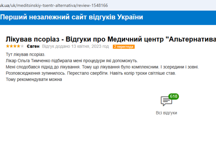 Главное в псориазе,не запускать его,что я и делаю.При первых появлениях я сразу обращаюсь в Альтернативу. Специалисты сдесь толковые с большим опытом,поэтому полностью им доверяю.Есть специальный курс лечения,который я прохожу и псориаз исчезает.Потом диета,специальная водичка и полный покой.