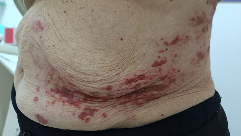 Опоясывающий герпес проявляется в виде болезненной сыпи вдоль одного или нескольких дерматомов, сопровождается интенсивной болью, которая может продолжаться даже после заживления сыпи (постгерпетическая невралгия).