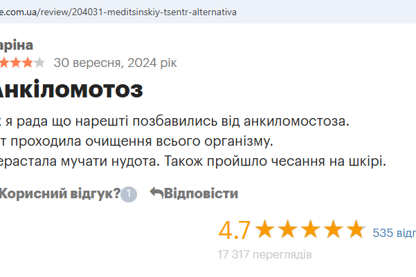 Отзыв – применение внутривенной озонотерапии при анкилостомозе
