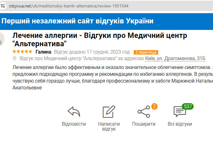 Лечение аллергии в медицинском центре «Альтернатива»