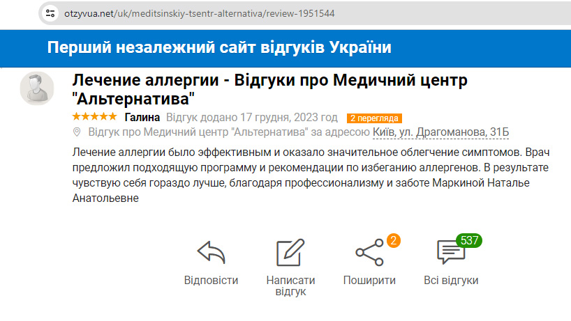 Отзыв: лечение аллергии