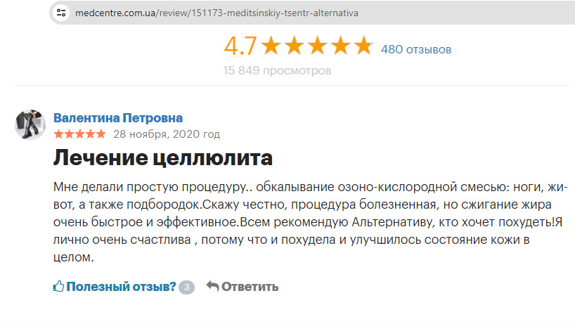 Отзыв: лечение целлюлита-обкалывание озоно-кислородной смесью ноги, живот, подбородок