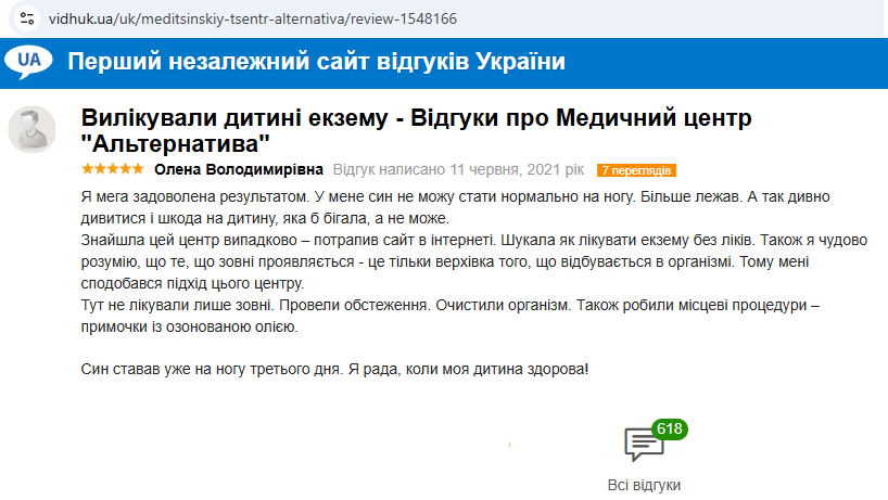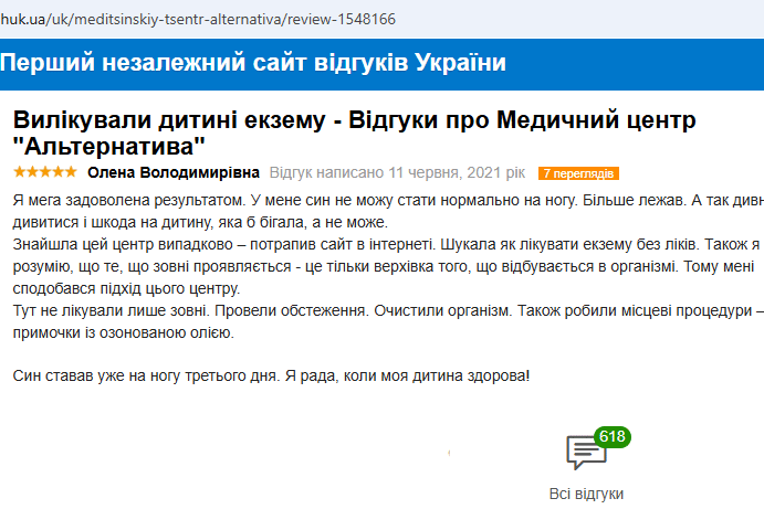 Нашла этот центр случайно — попался сайт в интернете. Искала как лечить экзему без лекарств.Также я прекрасно понимаю, что то что внешне проявляется — это только верхушка того, что происходит в организме. Поэтому мне понравился подход этого центра.