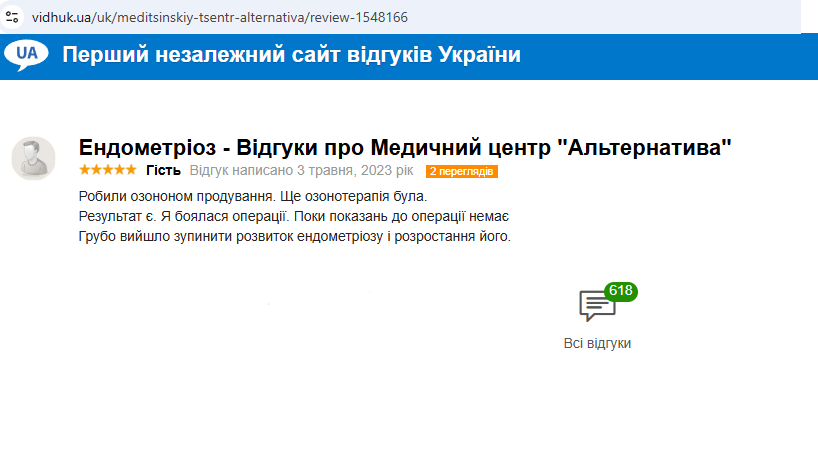Отзыв – вагинальные инсуффляции озоно-кислородной смесью при эндометриозе