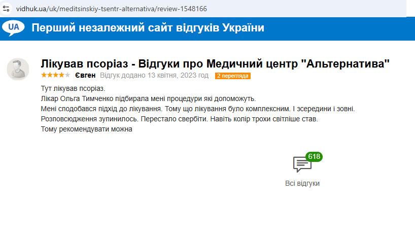 Здесь лечил псориаз.