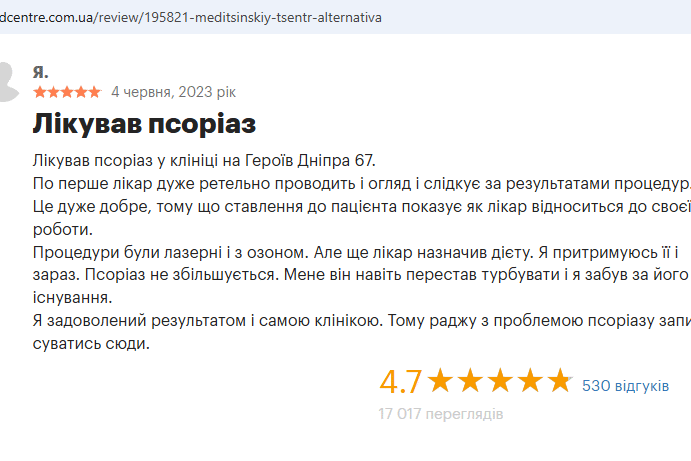 Лечил здесь псориаз: опыт, результаты и комплексный подход очищения организма в МЦ «Альтернатива»