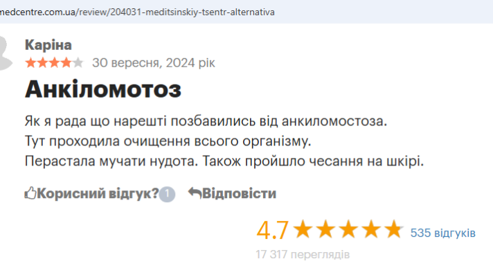 Комплексное очищение организма при анкилостомозе в МЦ “Альтернатива”
