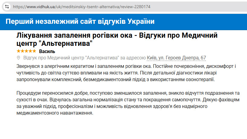 Отзыв — озонотерапия при воспалении роговицы глаза