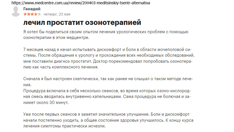 Я хотел бы поделиться своим опытом лечения урологических проблем с помощью озонотерапии в этом медцентре.