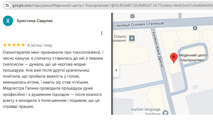 В медицинском центре «Альтернатива» озонотерапия применяется как часть комплексных программ, направленных на восстановление организма при токсоплазмозе.