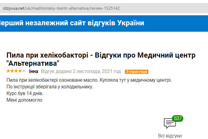 Отзыв: лечение хеликобактерной инфекции с помощью озонированного масла для внутреннего применения