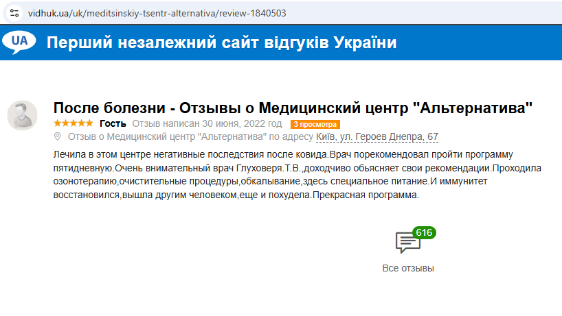 Восстановление организма после COVID-19 в МЦ «Альтернатива»