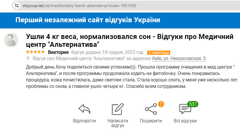 Прошла программу очищения в мед.центре «Альтернатива», и после программы продолжала ходить на фитобочку.