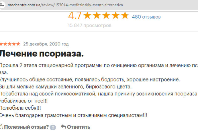 Комплексная программа лечения псориаза в МЦ «Альтернатива»