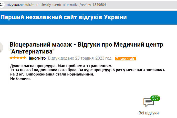 Отзыв: висцеральная терапия, снижение веса на 2 кг, нормализация пищеварения