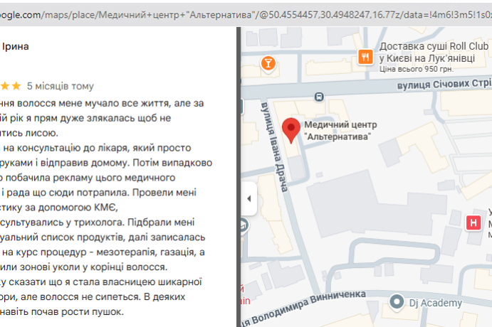 Жена заставила наконец то дойти до врача и вылечить перхоть. Смогли мне помочь в Альтернативе. Делали плазмолифтинг и озонотерапию. Результат не заставил себя ждать.