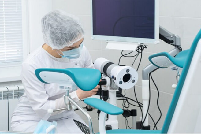- Кольпоскопія. Кольпоскопія – це візуальне дослідження шийки матки за допомогою спеціального пристрою, що називається колпоскопом. Вона дозволяє лікарю оцінити стан шийки матки та виявити будь-які аномалії, такі як поліпи чи інші зміни.