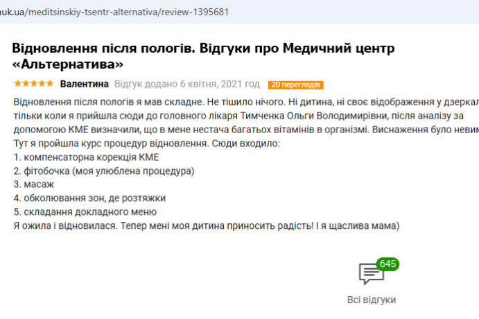Я обратилась в медцентр для подготовки к беременности. Программа включала детоксикацию, противопаразитарную терапию и озонотерапию. Процедуры включали фиточаи, клизмы, фитобочку, гидромассаж и слепое зондирование. Я также прошла курс висцерального массажа и гирудотерапии. После завершения курса я почувствовала значительное улучшение состояния здоровья и эмоционального фона. Уже через пару месяцев я забеременела естественным путем.
