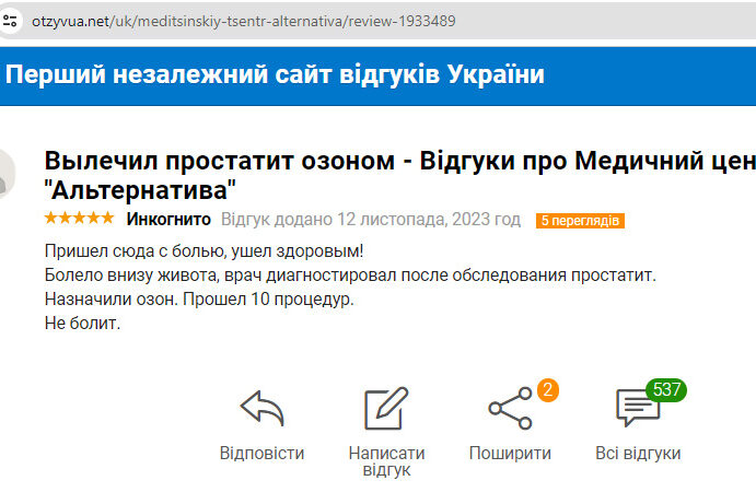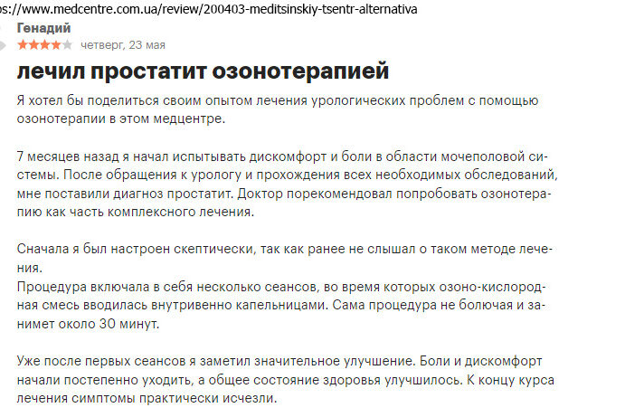 Комплексне лікування простатиту у медичному центрі «Альтернатива» допомагає пацієнтам повернутися до повноцінного життя, усуваючи не лише симптоми, але й причини захворювання. Використання таких методів, як витягнення хребта та озонотерапія, дозволяє досягти значних результатів у боротьбі з простатитом та покращенні загального стану організму.