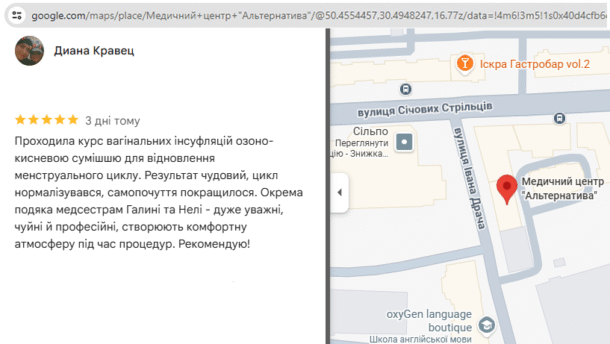 Отзыв: для восстановления менструального цикла проходила курс вагинальных инсуфляций озоно-кислородной смесью