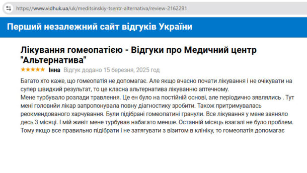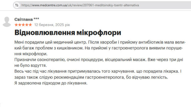 Меня беспокоили расстройства пищеварения. Это не было на постоянной основе, но периодически появлялось. Здесь мне главврач предложила полную диагностику сделать. Также придерживалась рекомендованного питания. Были подобраны гомеопатические гранулы. Все лечение у меня заняло около 3 месяцев. И мой живот меня беспокоил гораздо меньше. Последний месяц вообще не было проблем.