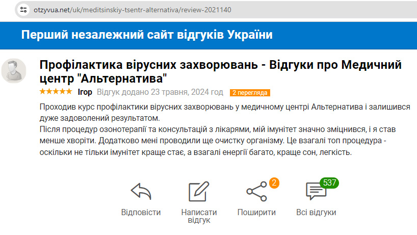 Очень меня порадовала методика, никаких болезненных ощущений я не испытывала. После первых капельниц с озоном у меня очень сильно повысилась температура, но мне объяснили, что это действие, что вирусы распадаются.