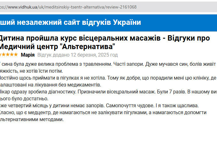 Дочка страждала від частих закрепів. УЗД показало проблеми з моторикою кишківника. Програма відновлення, що включає озоновані мікроклізми і протипаразитарні заходи, допомогла дочці нормалізувати випорожнення і поліпшити загальне самопочуття.