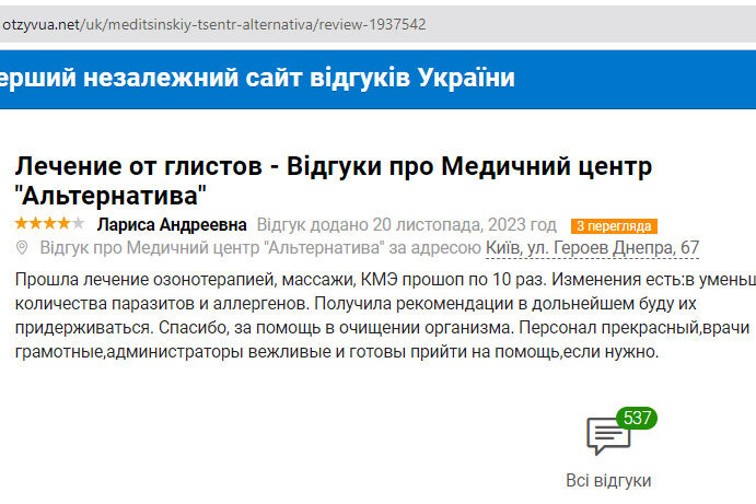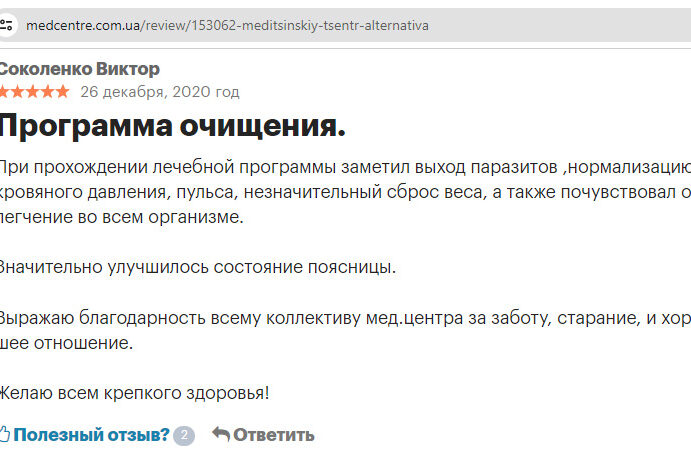 Противопаразитарная программа для пациентов МЦ «Альтернатива»