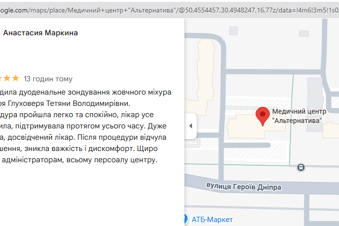 Медичний центр «Альтернатива» поєднує професіоналізм лікарів, індивідуальний підхід та сучасні методи лікування. Тут приділяється увага не лише медичній стороні процедури, а й комфорту пацієнта, що особливо важливо під час проведення таких втручань, як дуоденальне зондування.