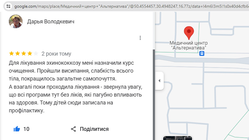 Відгук пацієнта про лікування ехінококозу в медичному центрі “Альтернатива”