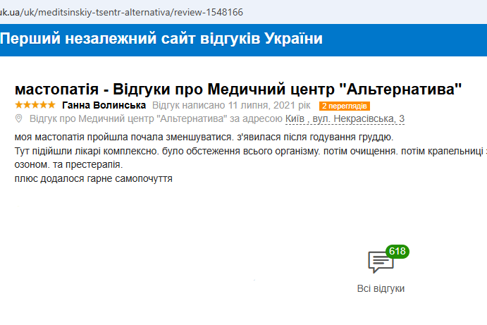 Лікування мастопатії із застосуванням детоксикації організму в МЦ «Альтернатива»