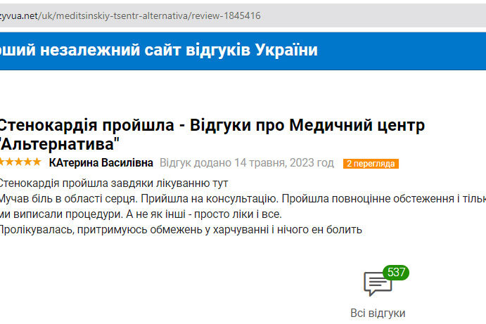 Методика лікування стенокардії без медикаментів в МЦ «Альтернатива»