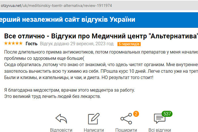 У разі традиційна медицина часто обмежується призначенням чергових медикаментів, посилюючи порочне коло. Однак у медичному центрі «Альтернатива» застосовується інший підхід — природне відновлення організму без хімічних препаратів через очищення та активацію внутрішніх резервів.