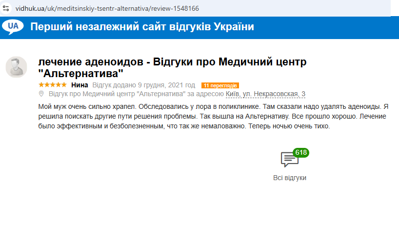 Відгук – лікування аденоїдиту, сильного хропіння
