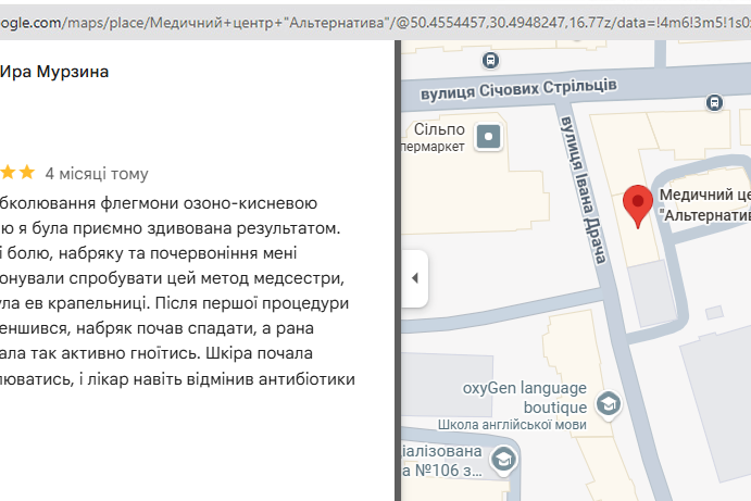 «Після обколювання флегмони озоно-кисневою сумішшю я була приємно вражена результатом.
